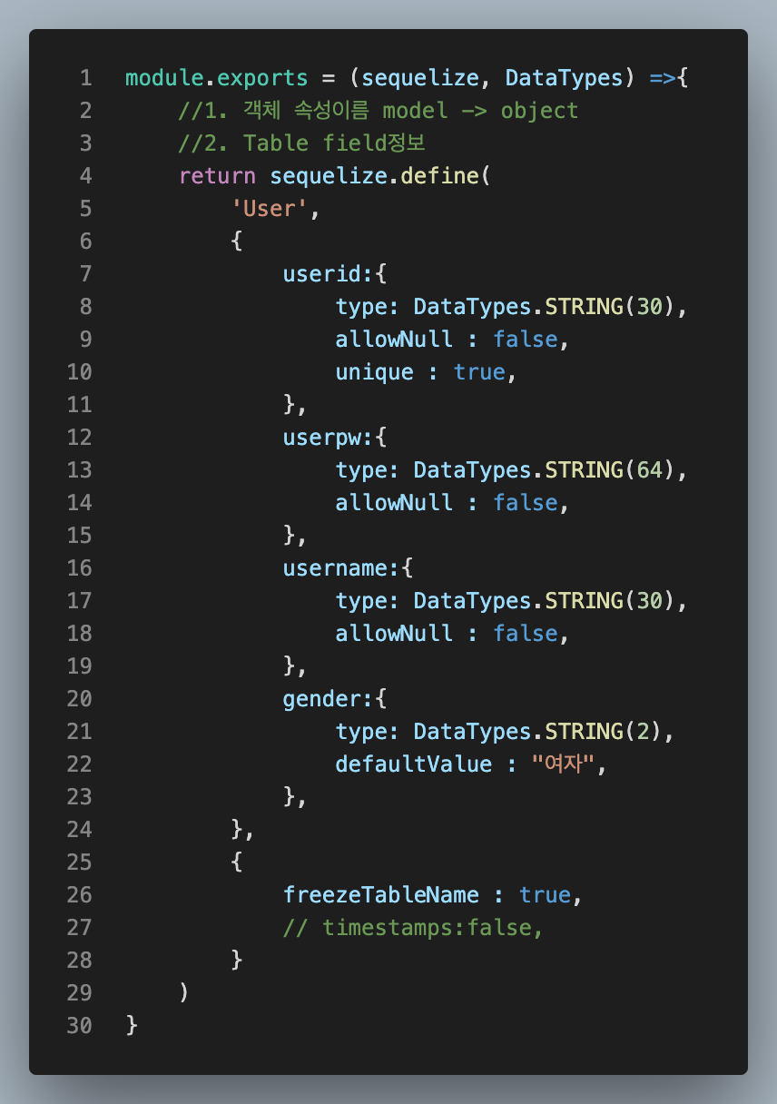 - sequelize를 이용하여 자바스크립트 코드로 SQL을 제어할 수 있다.
