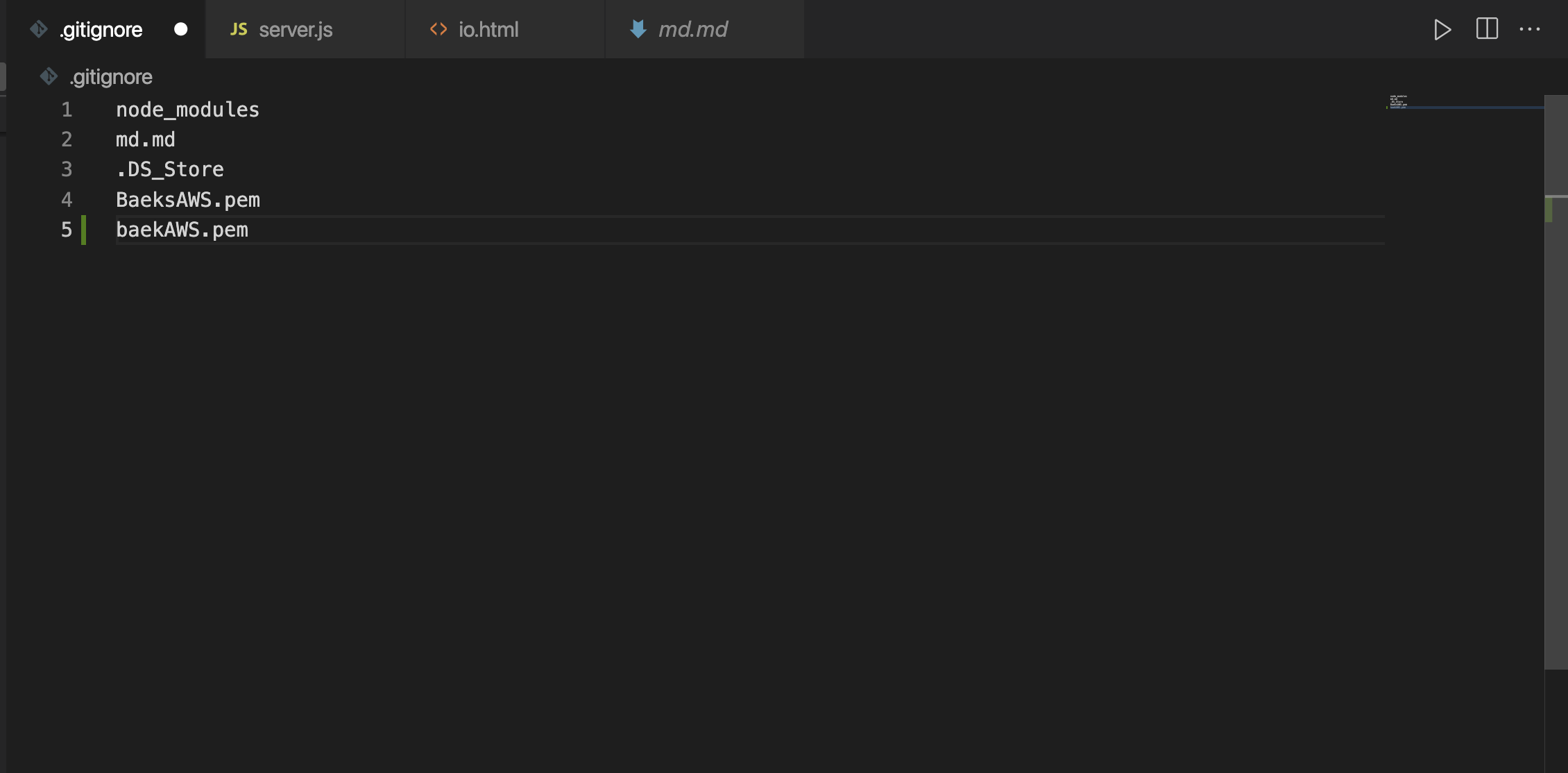 그리고 이 파일은 외부로 공개되면 안 되기 때문에 github에 올리기 전에 gitignore에 파일을 추가해서 노출되지 않도록 하자.