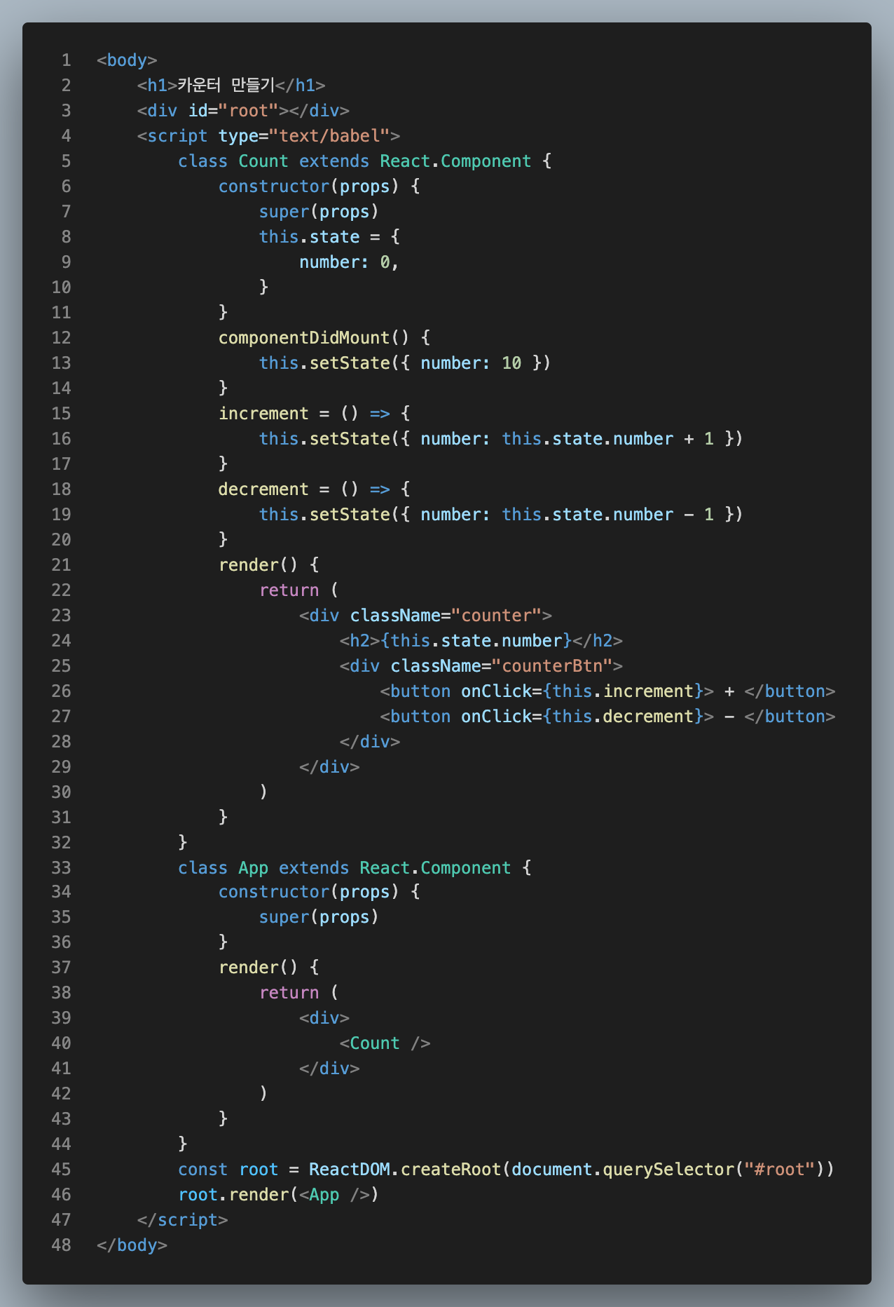 처음 랜더 했을 경우 초기값이 10이 뜨는데 어떤 순서에 의해서 10이 되는지를 알아야 한다. 실행되자마자 10으로 세팅되는 것이 아니다.