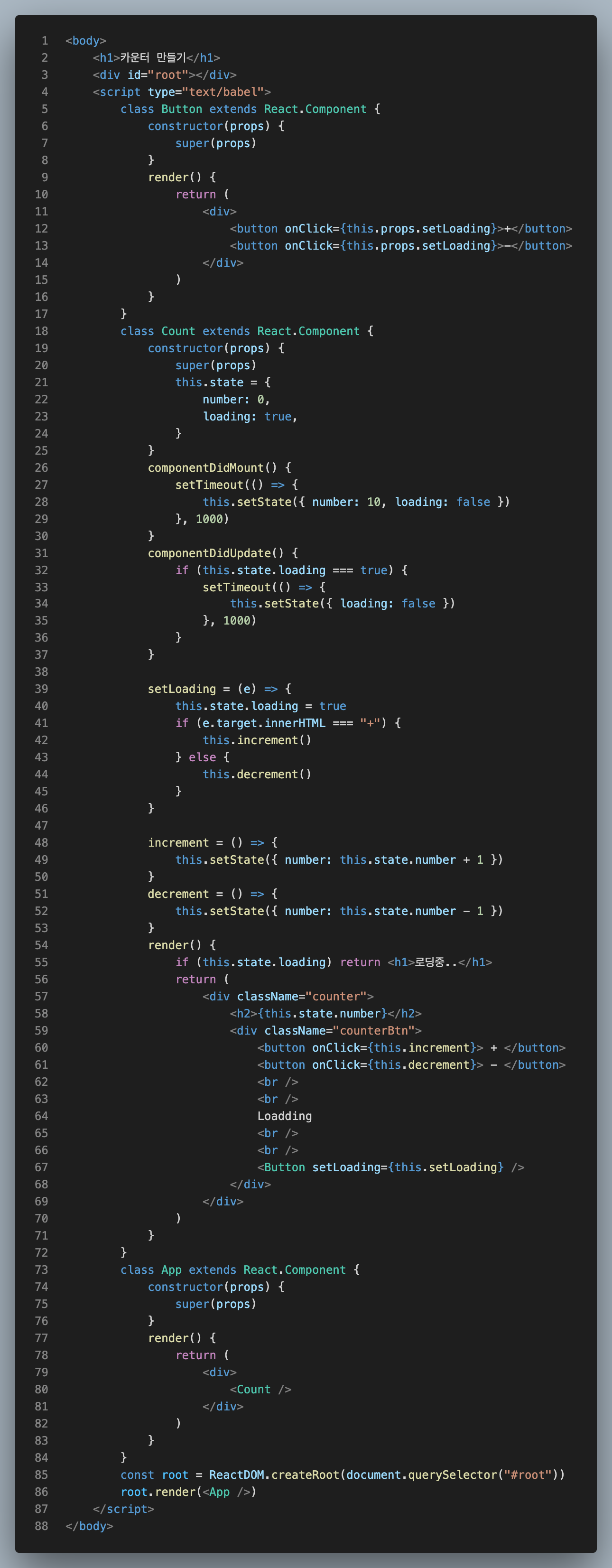 - 버튼을 누르면 setLoading 함수가 호출된다.
