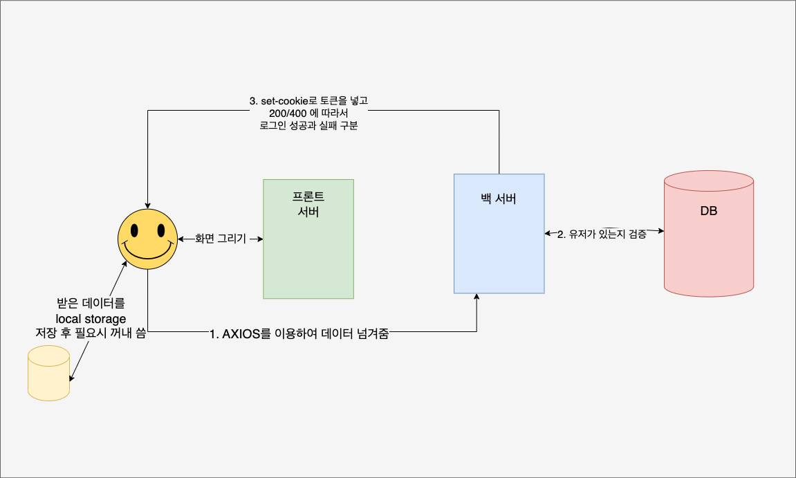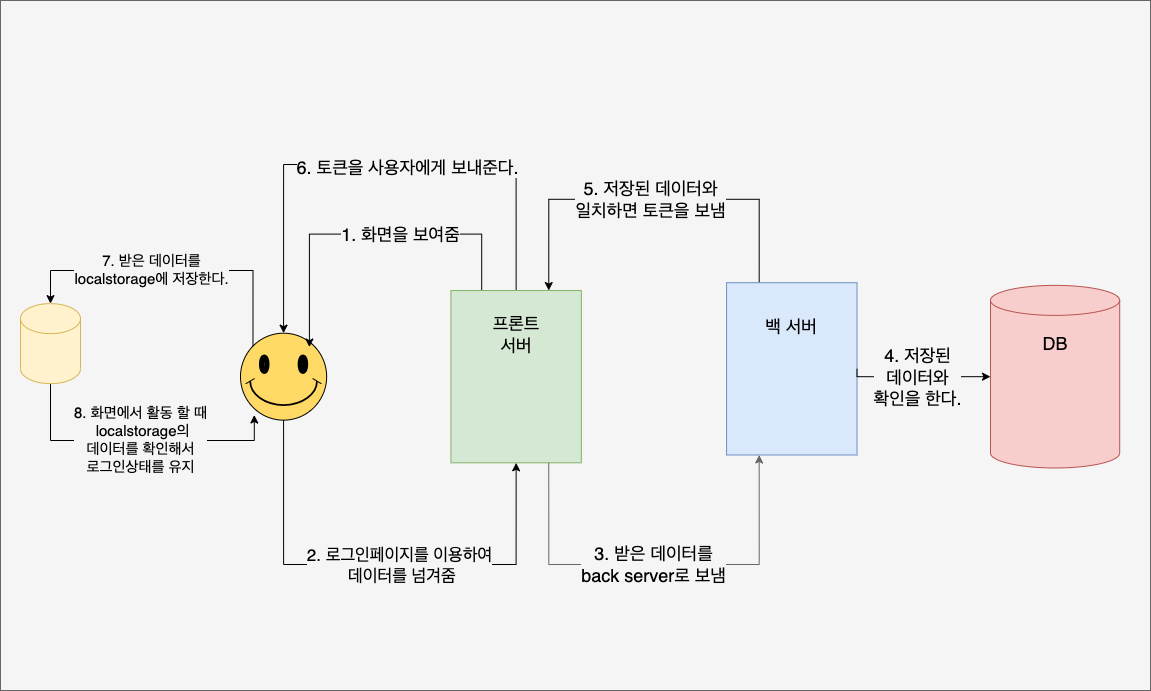 로그인을 하는 과정에서 로그인 처리를 하면서 로컬스토리지에 저장으로 끝나는 것이 아니라