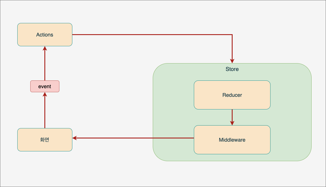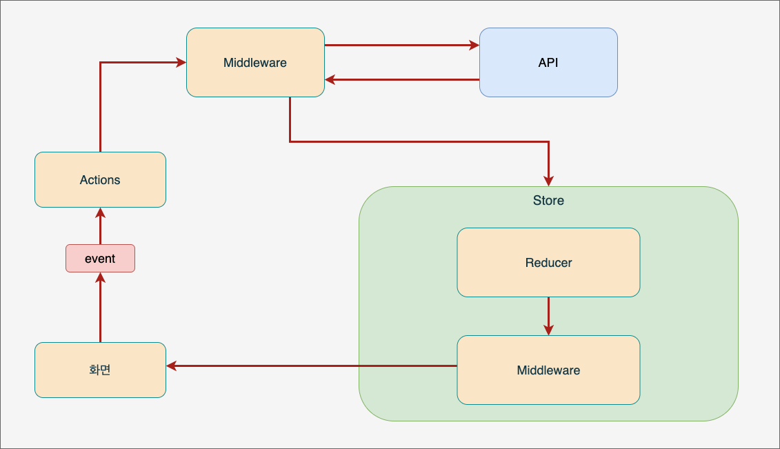 그렇게 해서 redux라는 라이브러리가 생겼고, redux를 이용하여 action 다음에 reducer함수가 발동되기 전에 middleware 단계에서 추가적인 과정을 할 수 있게 되었다.