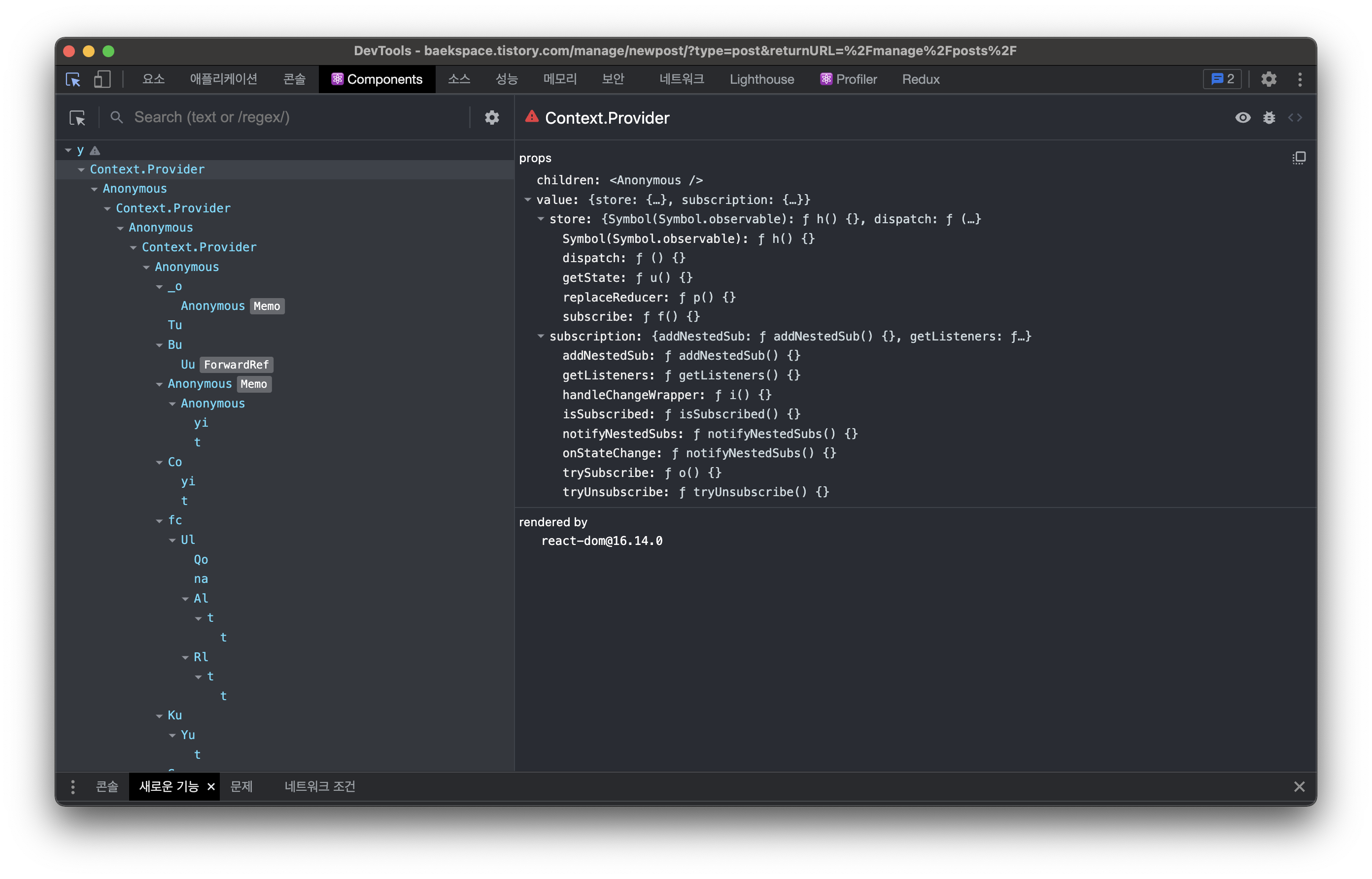 개발자 도구를 열면 Components 탭이 생긴다.