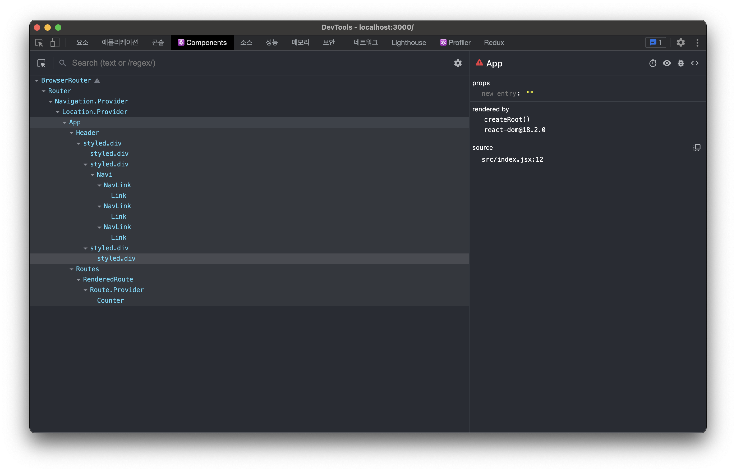 1. 컴포넌트 트리 구조를 확인할 수 있다.