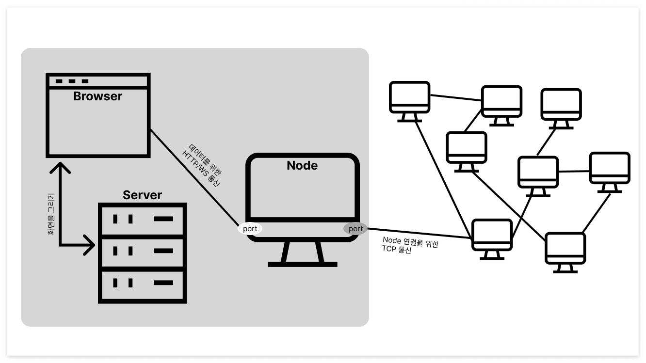 - 다른 노드와의 상호작용을 위한 TCP 통신을 이용한다.