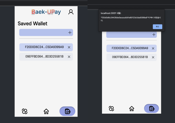 saved Wallet이라는 페이지에서 즐겨 찾는 계정의 느낌으로 저장해 놓은 계정을 불러올 수 있고, 삭제하는 기능도 가지고 있다.