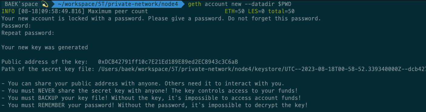 키는 여러 개를 사용할 수 있으며, 노드를 실행할 때 언락을 할 계정을 지정한다.