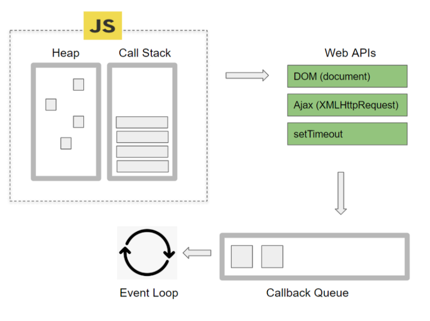 코드가 실행이 될 때 브라우저에서 만든 함수를 백그라운드로 넣고 설정 시간이 지난 후 실행을 하면서 테스크 큐에 넣어둔다. 테스크 큐는 선입선출, 즉, 먼저 실행된 코드가 먼저 실행이 된다. 테스크 큐는 콜스택을 보고 있다가 콜스택의 함수들의 실행이 끝난 후 테스크 큐에서 대기하고 있던 코드들이 콜스택으로 들어갔다 나오면서 코드가 실행이 된다.