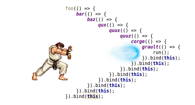 함수의 매개변수로 다른 함수가 들어가고 그 함수 안에 매개변수로 또 다른 함수가 들어가서 코드의 들여 쓰기가 심하게 깊어지는 현상을 말한다.