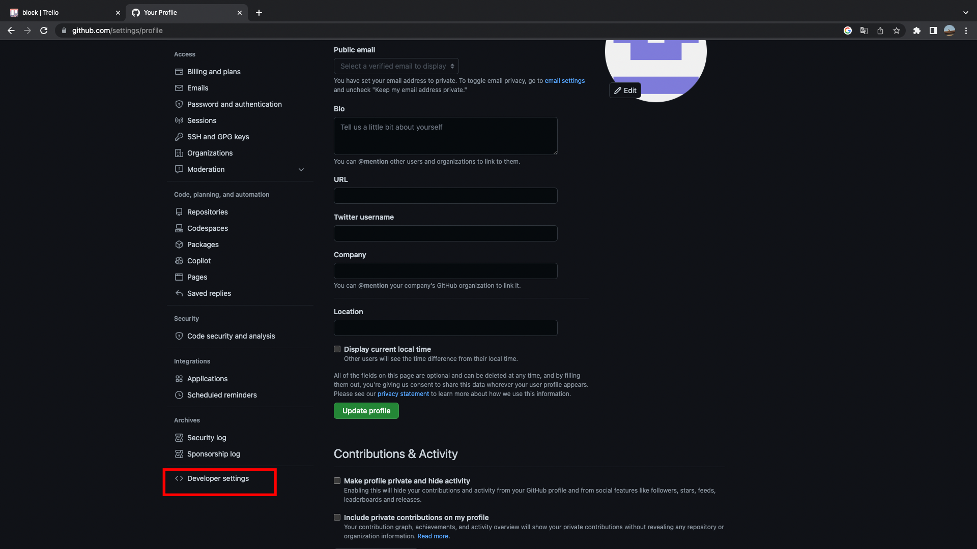 3. 좌측 사이드바에 맨 밑에 보면 Developer settings 버튼이 있습니다. 해당 버튼을 눌러주세요.