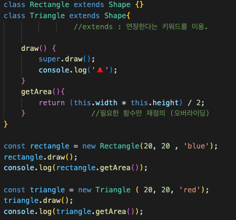밑에 트라이앵글이라는 클래스를 만들 수 있는데 여기에도 똑같이 Shape의 클래스를 확장한다.