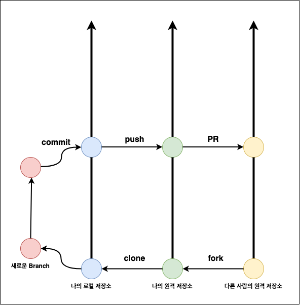 타깃 프로젝트를 fork로 내 원격 저장소에 저장한 후 내 깃허브의 원격 저장소를 로컬 저장소로 복사하고 원하는 작업을 한 뒤에 PR로 수정사항에 대한 merge를 요청한다. 원격 저장소의 소유자가 원하는 코드에 대해서 만 승인하여 merge 할 수 있고, 재수정을 요청(반려) 시킬 수 있다.
