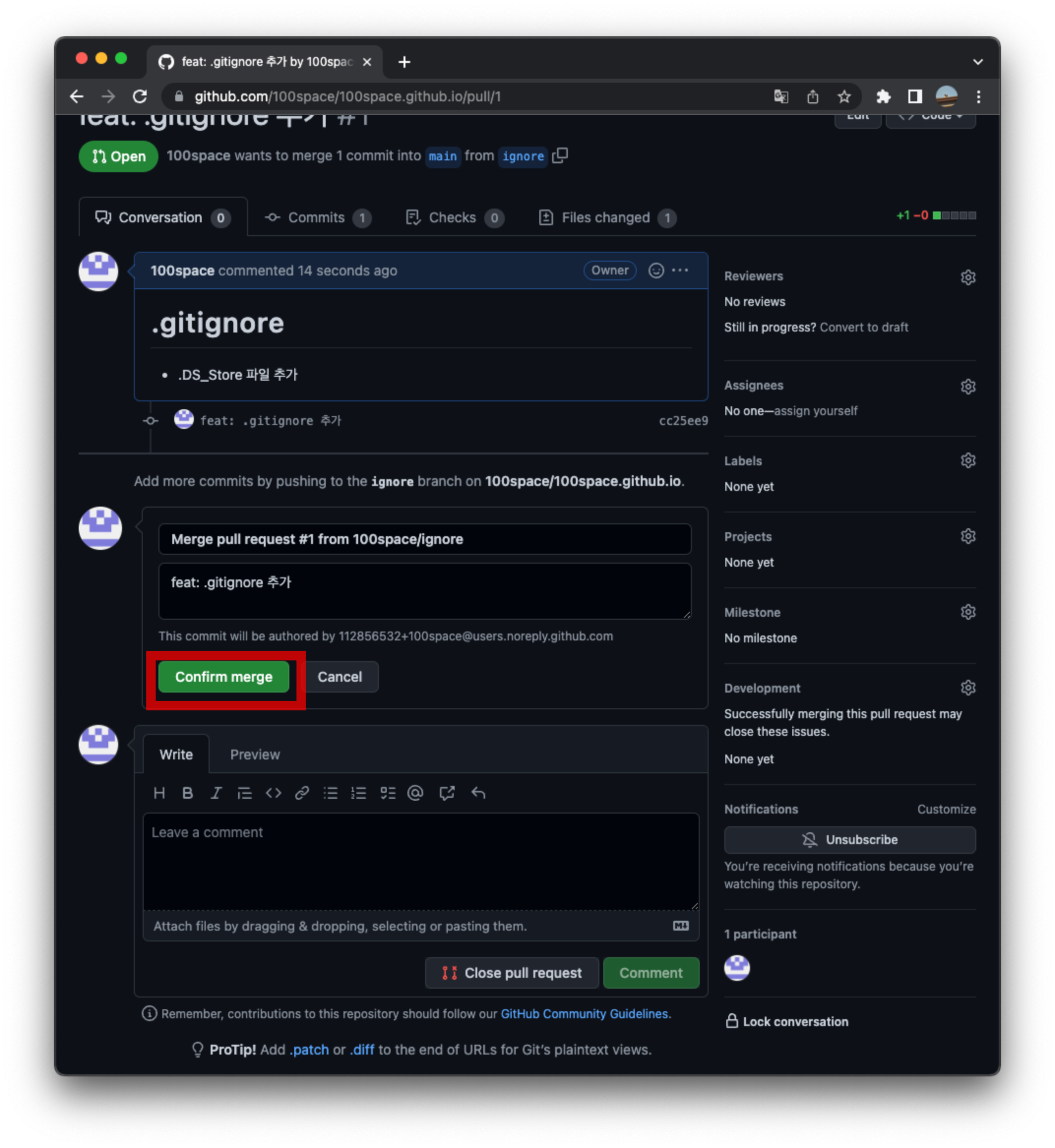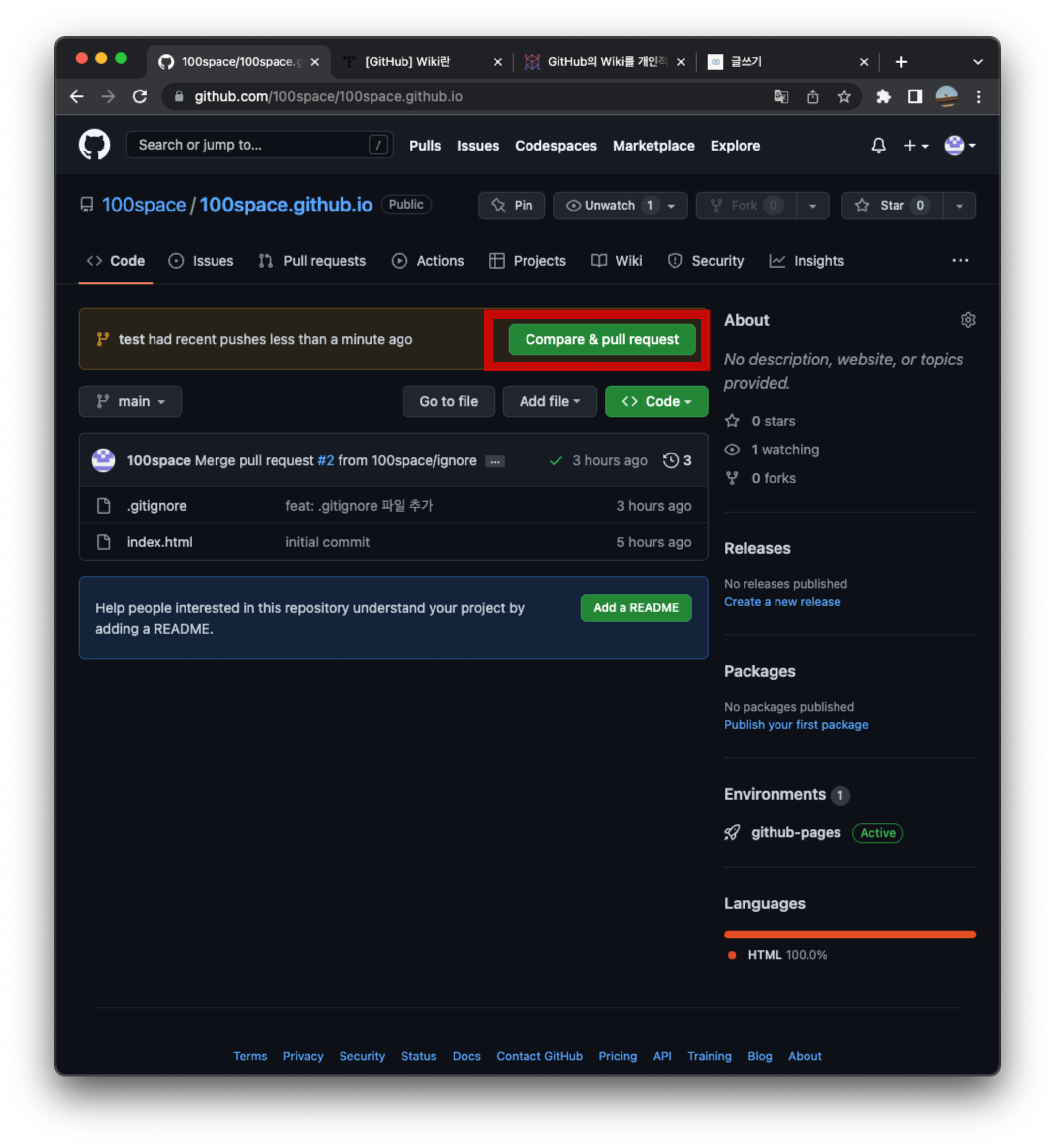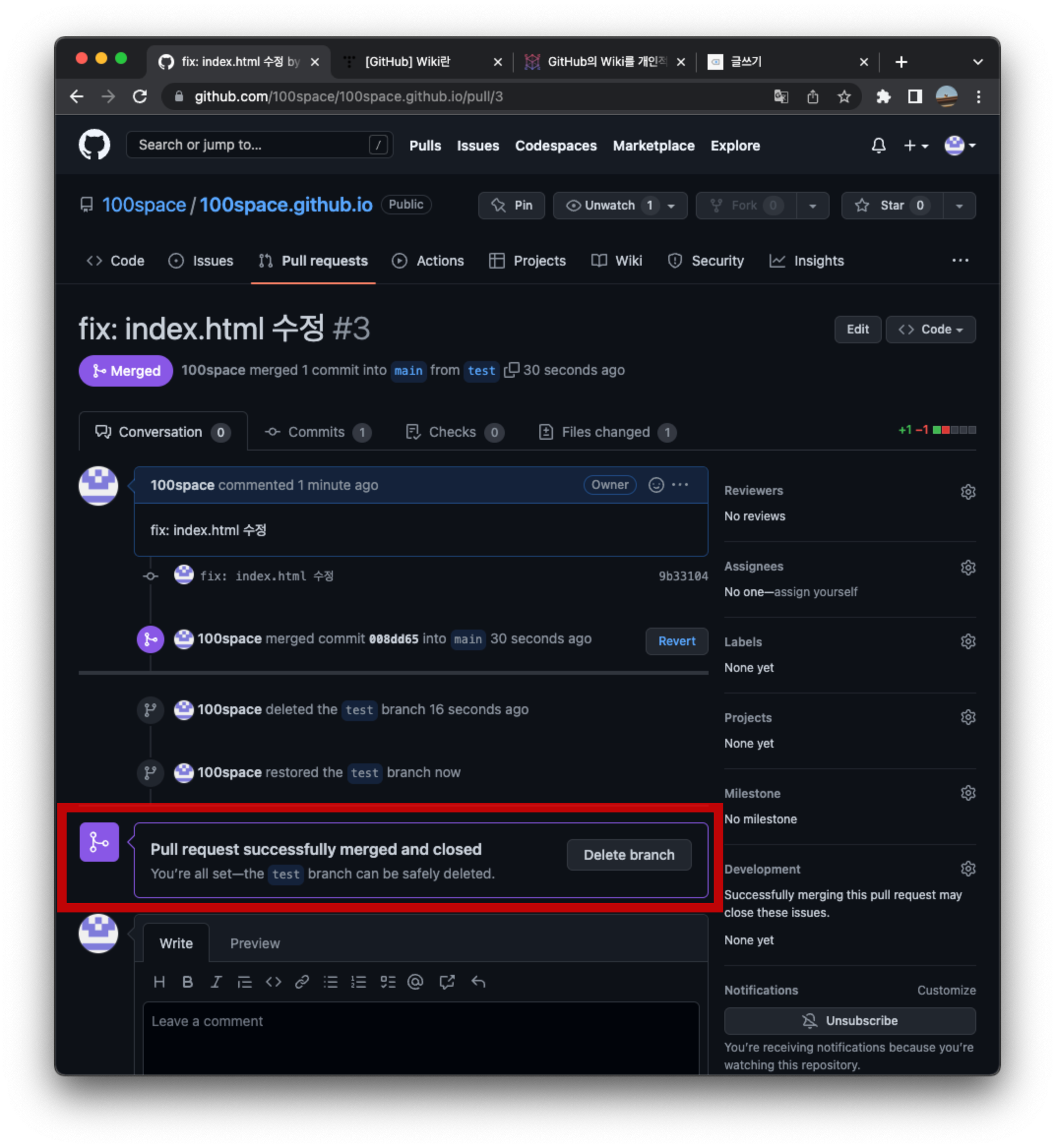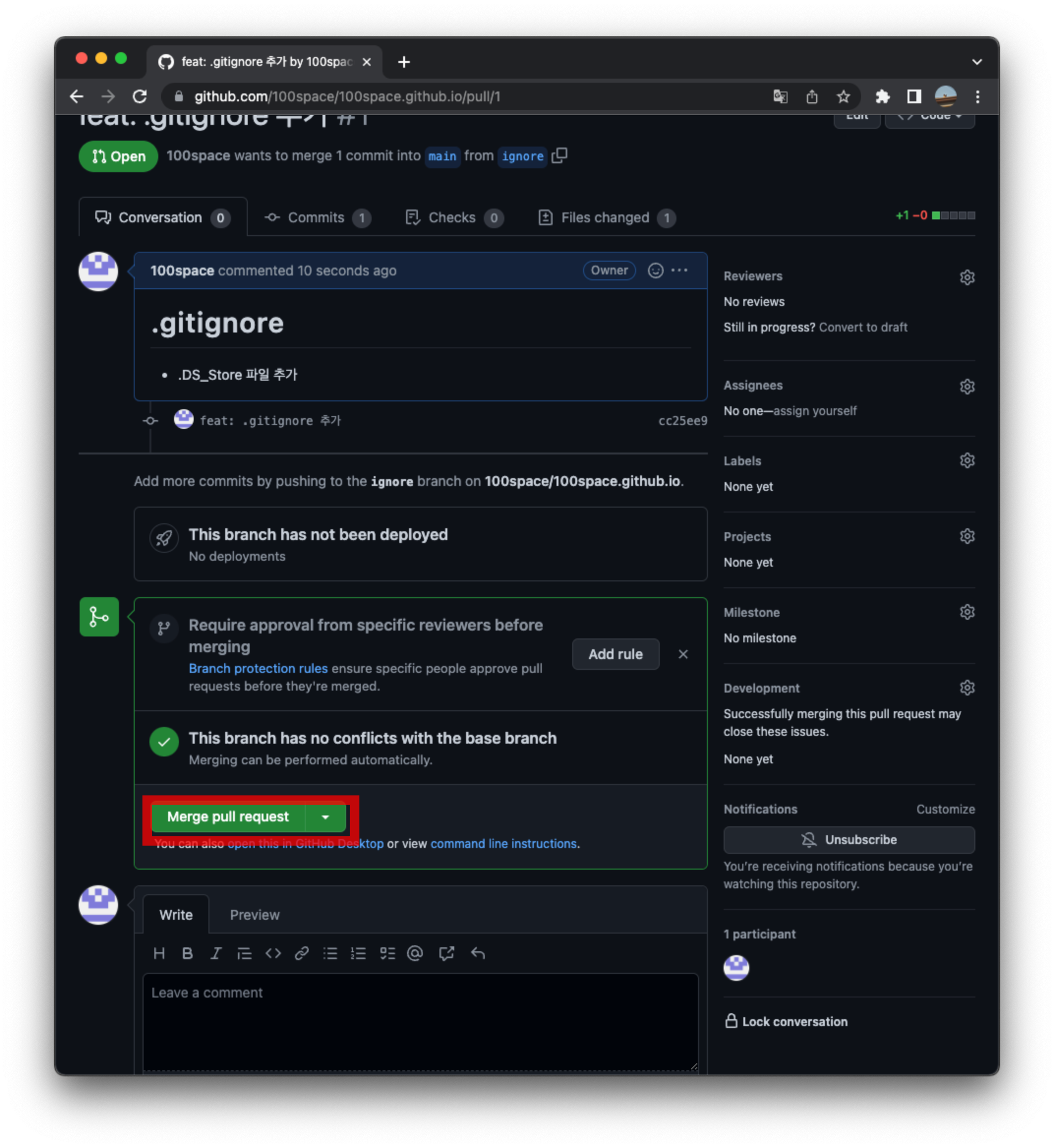 github에서 merge를 해준다. 자동으로 하는 것이 아니라 버튼을 눌러야한다.