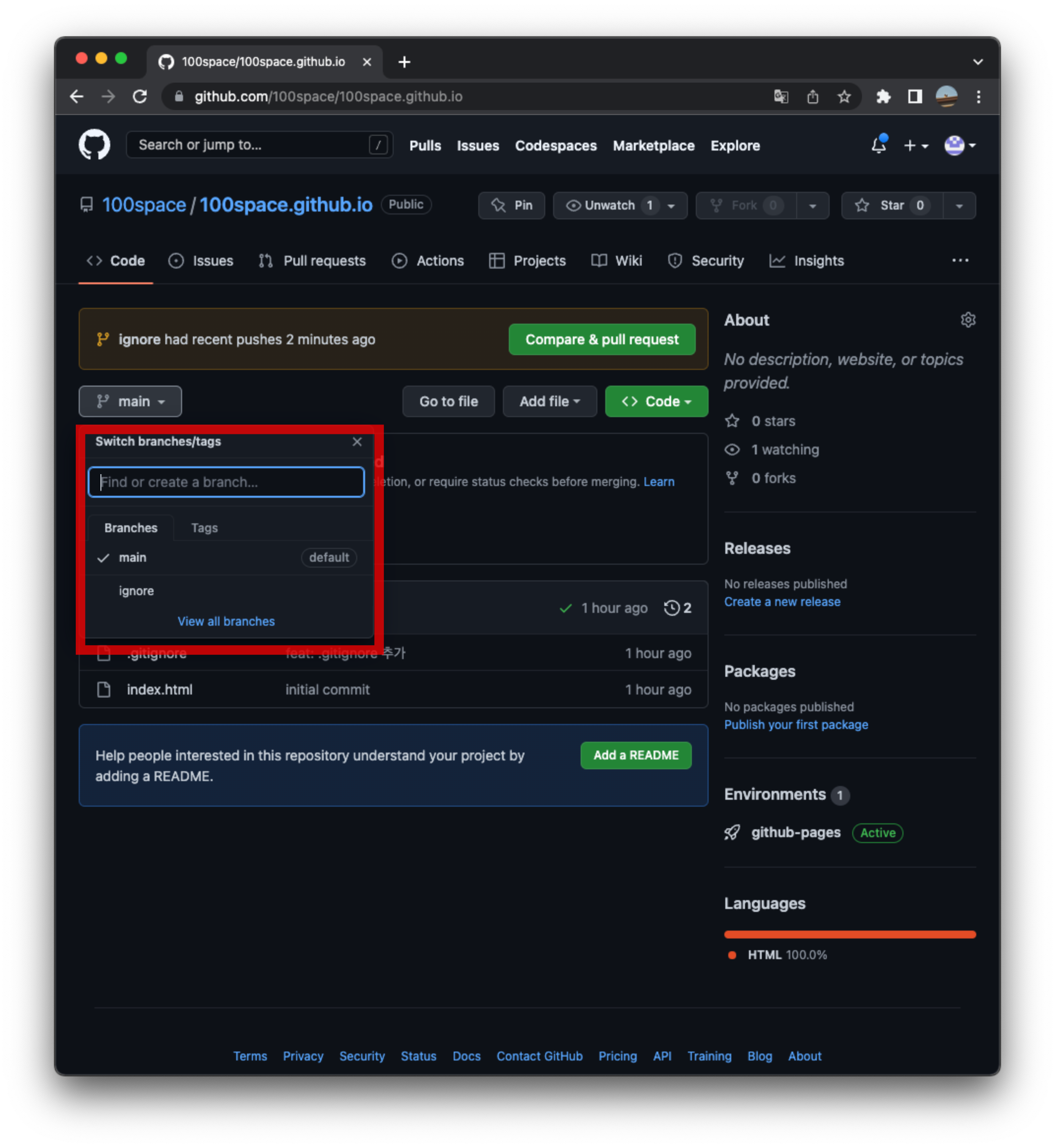 ( 자동으로 진행되는 것이 아니기 때문에 다른 사람의 브랜치를 확인을 할 수 있다.)