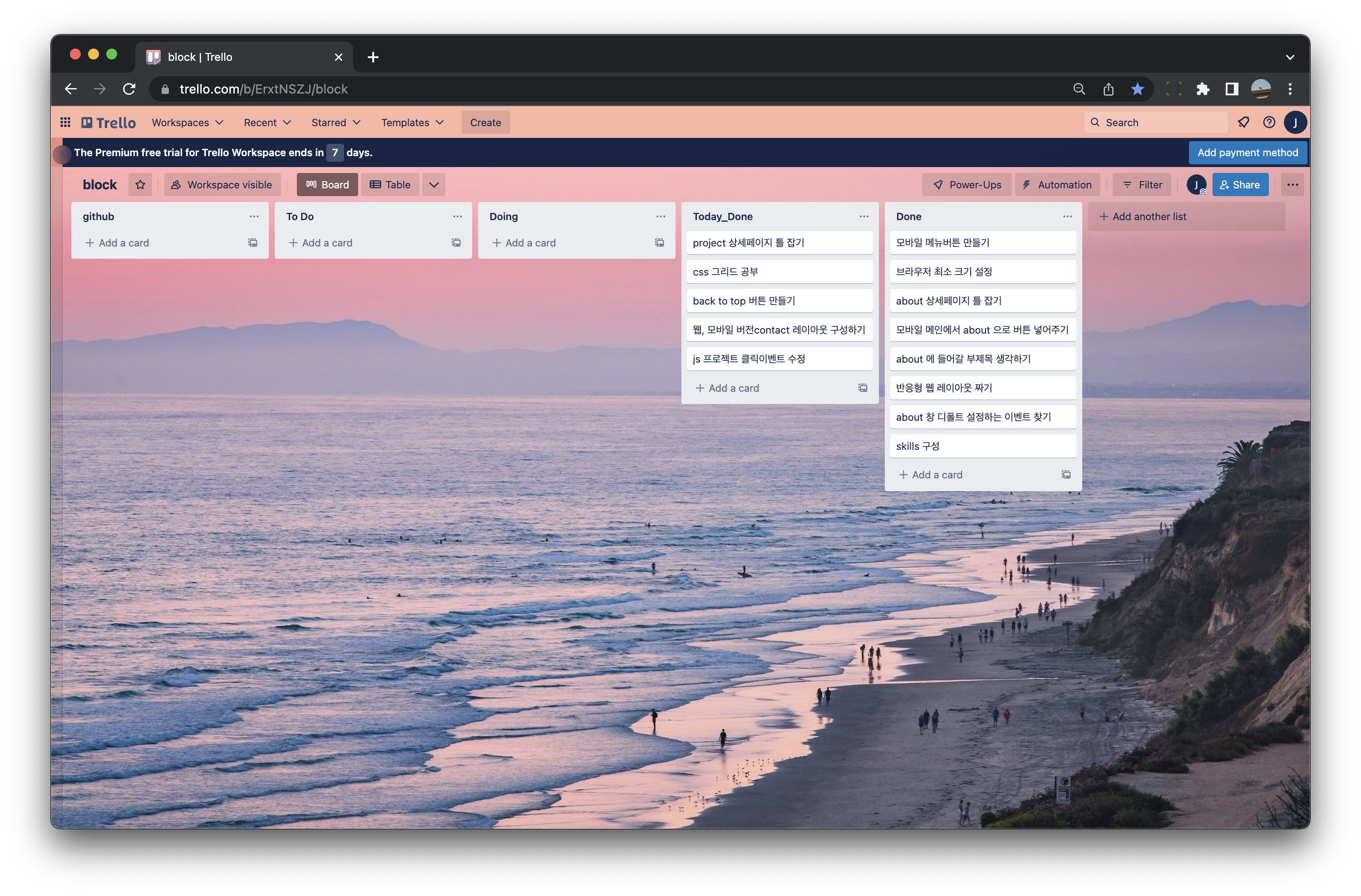 - 내용 : 추후 포트폴리오를 위한 개인 페이지 만들기 4일차