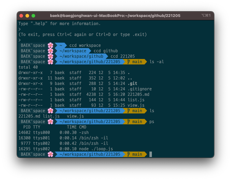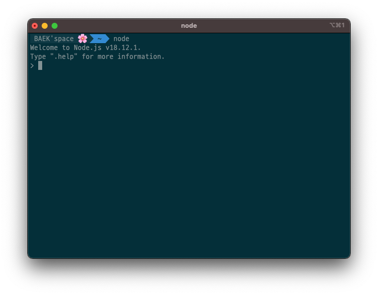 윈도의 cmd 나 맥과 리눅스의 터미널을 열고 node라고 치면 화면에 > 로 바뀌는 것을 보실 수 있습니다.