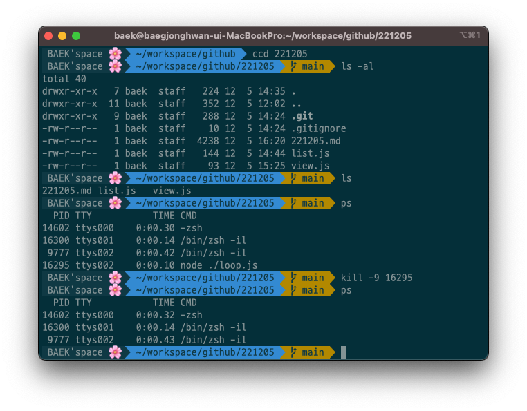 그래서 새로운 탭을 열어서 프로세스를 끄는 방법과 'control + c' 사용한 방법을 이용하여 프로세스를 끌 수 있습니다.