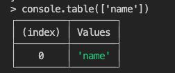 console.table(['name'])