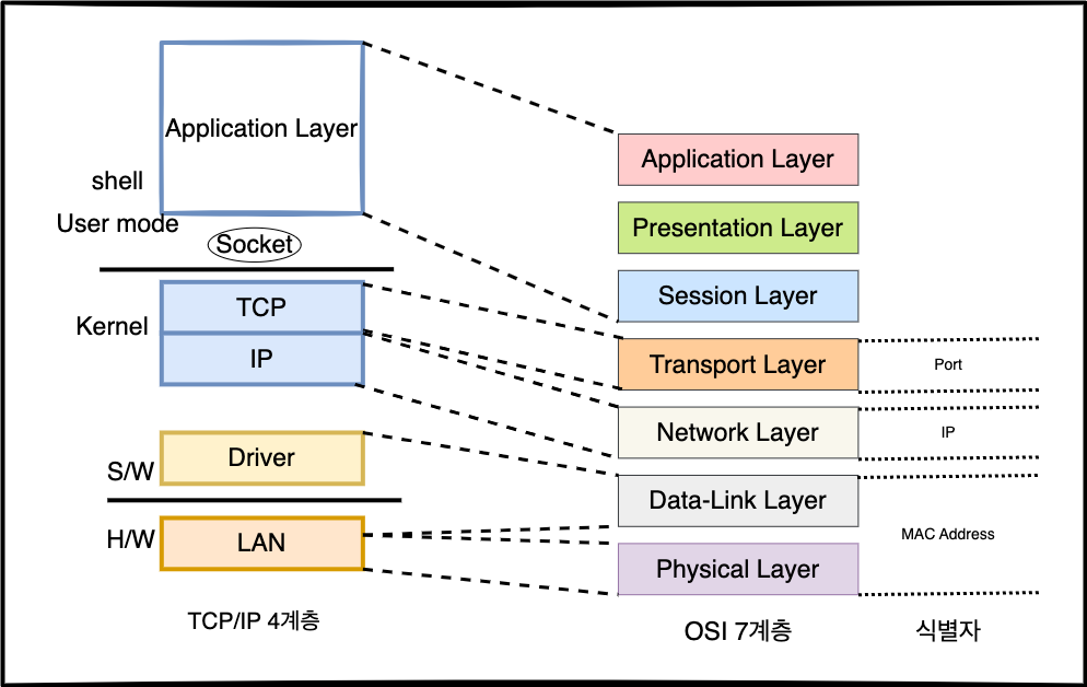OSI 7계층, TCP/IP 4 계층과 고유 식별자