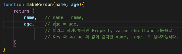 // 이라고 적어야하지만 Property value shorthand 기능으로