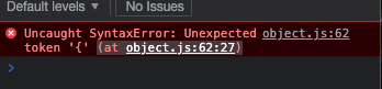 Uncaught SyntaxError: Unexpected token '{' (at object.js:62:27) 에러 발생