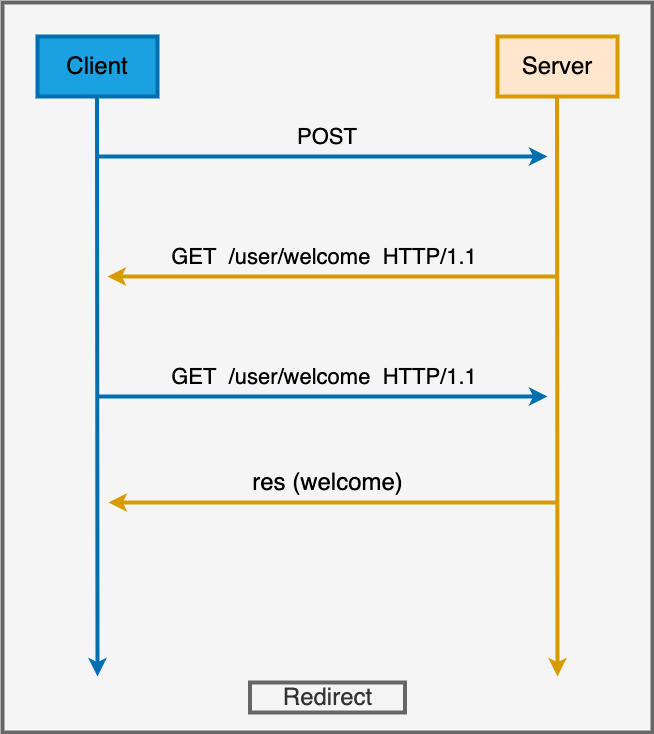 Client가 POST 요청을 보냈을 때 응답을 redirect로 처리하여 재요청을 해달라고 응답을 보내는 방식
