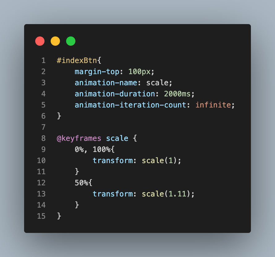 - animation-iteration-count : 애니메이션이 몇 번 반복될지 지정한다. infinite로 지정하여 무한히 반복할 수 있다.