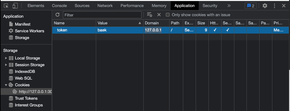 res.setHeader('Set-Cookie', "token=baek; Domain=127.0.0.1; Path=/; Secure; HttpOnly")